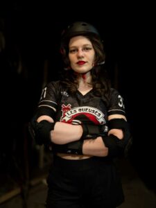 Les Drag Kings George Profonde et Daisy Lusion ont aimablement acceptés d’illuminer les mi-temps du double header « Roue·volution » le 17 mai 2025.